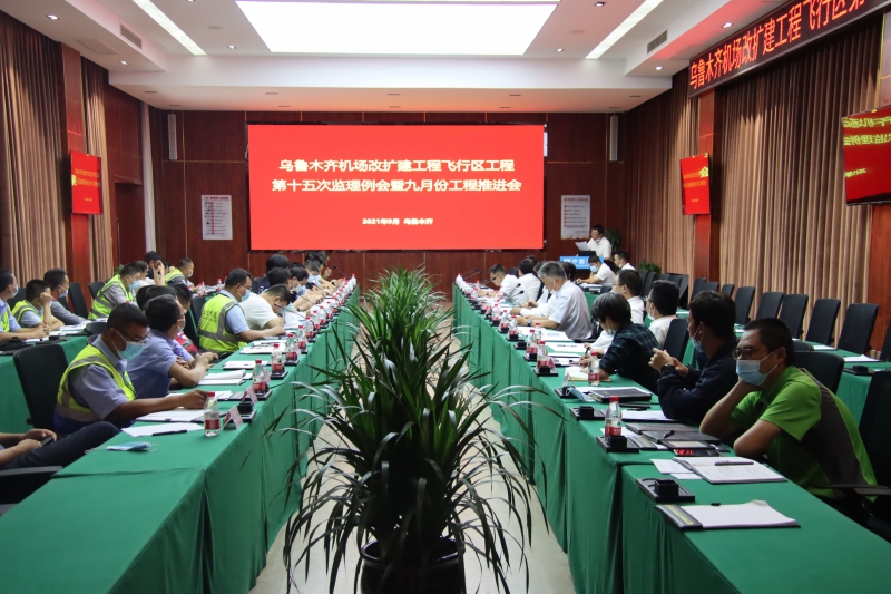 9月3日上午,烏魯木齊國際機場改擴建工程飛行區第十五次監理例會暨九月份工程推進會順利召開。此次會議由烏魯木齊臨空開發建設投資集團有限公司、烏魯木齊國際機場改擴建工程建設指揮部、烏魯木齊臨空中建機場建設運營有限公司、8家場道施工單位,3家監理單位、2家第三方檢測單位以及相關參建單位的負責人、項目經理參加。